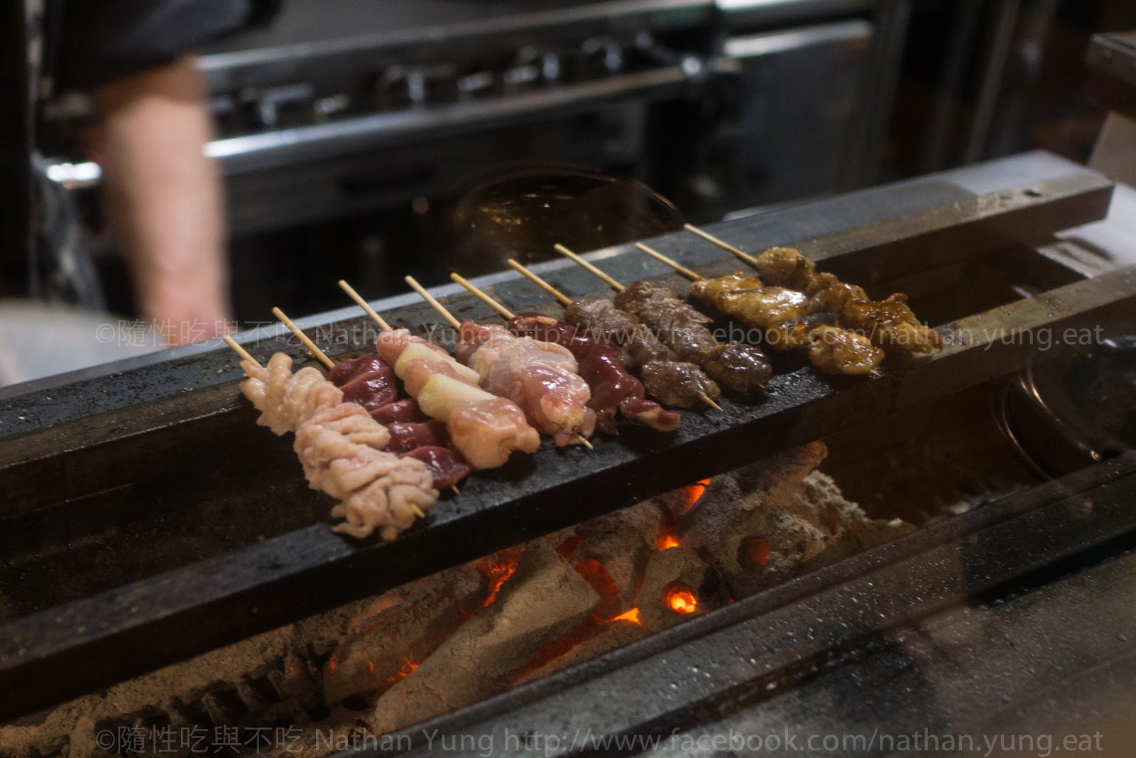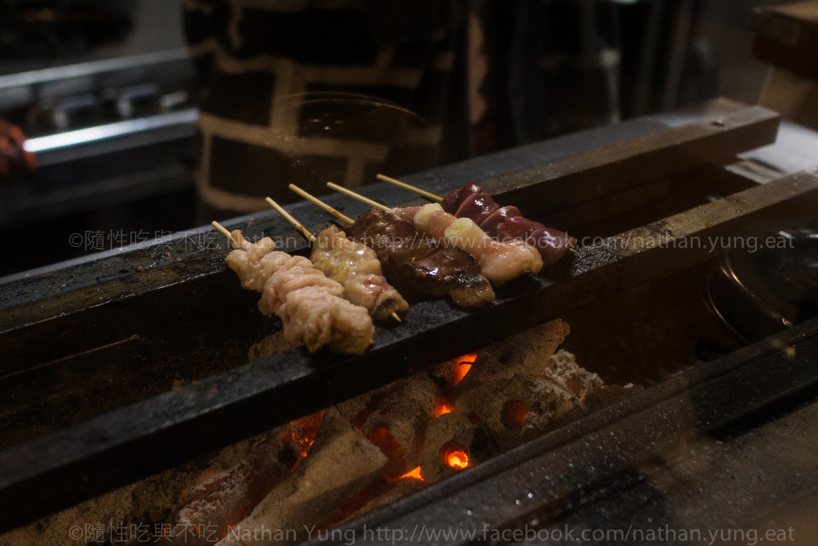 這是我點的串燒組合,有雞皮、雞肝、雞腿肉、雞心,還有一串忘了是啥。