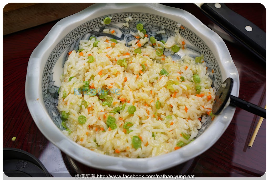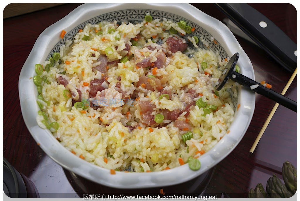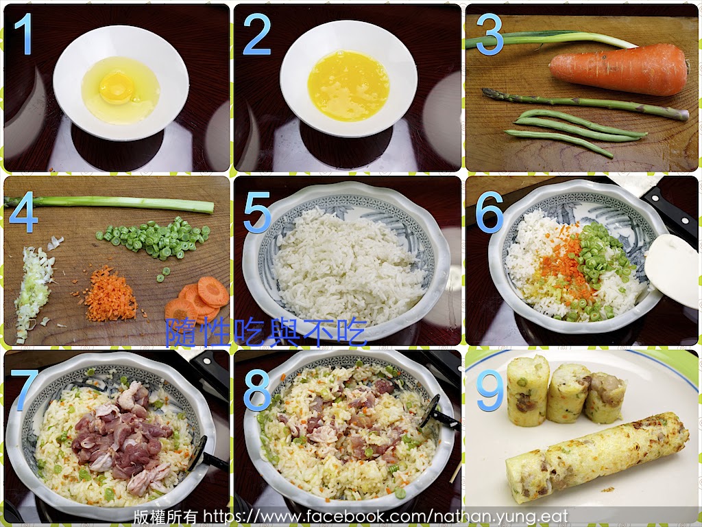 食材中記得要加蛋唷,增加米飯間的黏度,更增加了營養,雞肉記得要再切小塊一點,才會容易熟!