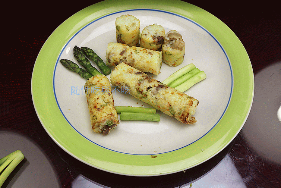注意到沒,蔥綠部分就是最上段,太貪心把蛋汁加太多的下場~~~囧。