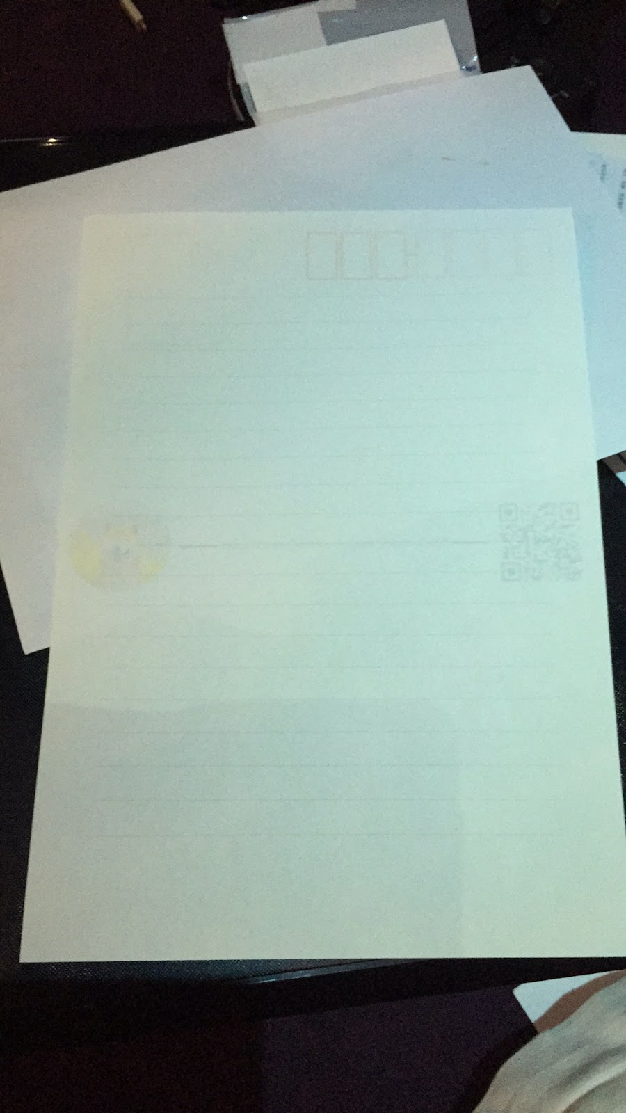 原本是計畫印製版型跟收件人地址,沒想到明信片紙、照片紙都一樣不能在背面列印,墨水會暈開。