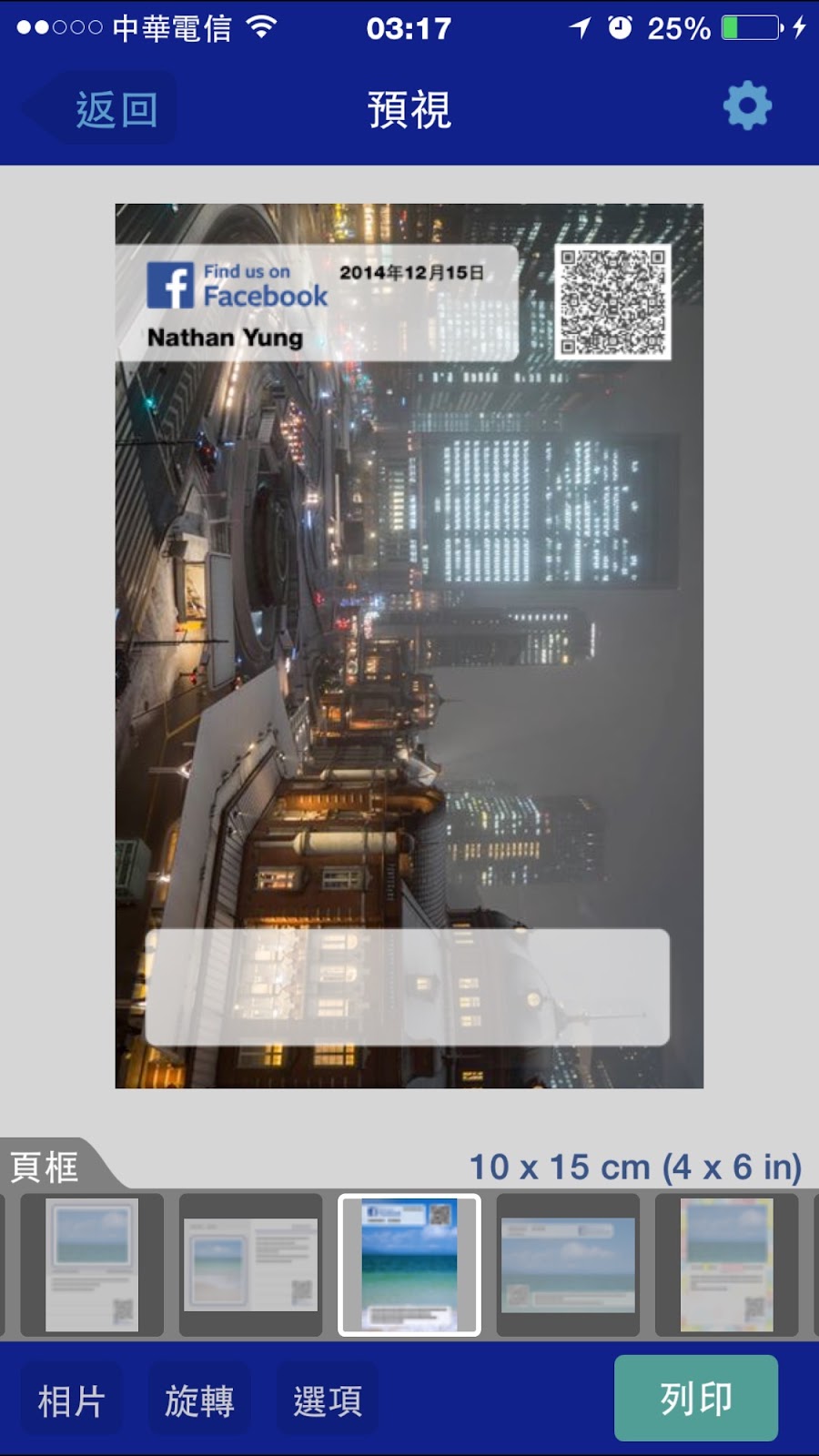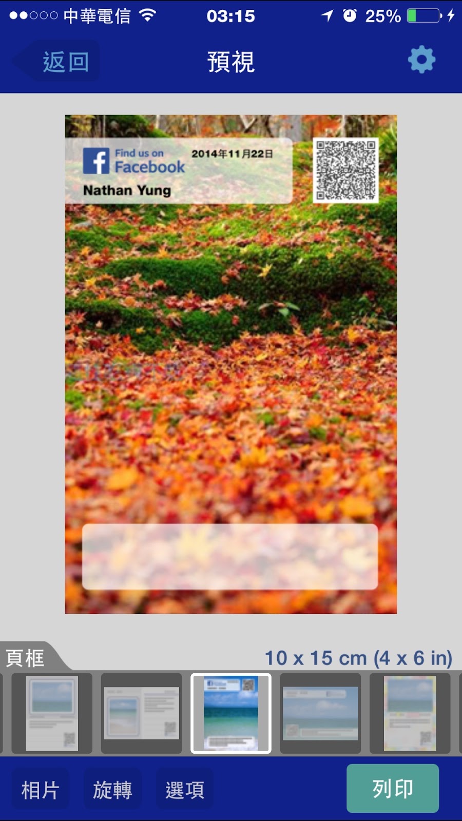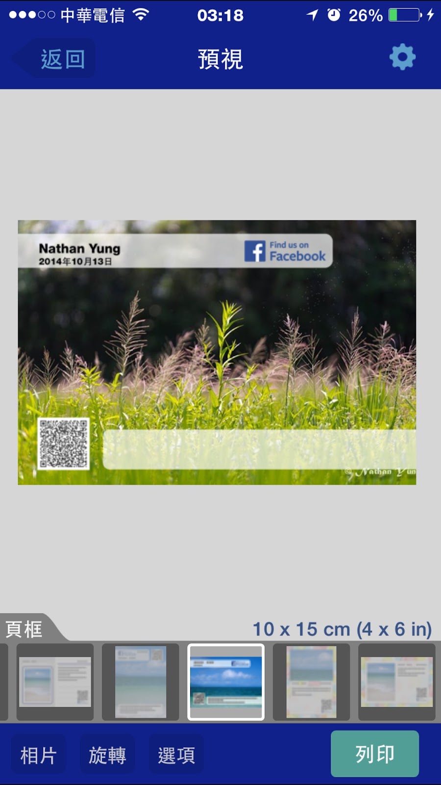 而且會有放照片的時間跟照片網址的QR CODE,版型有好幾種可以選擇。