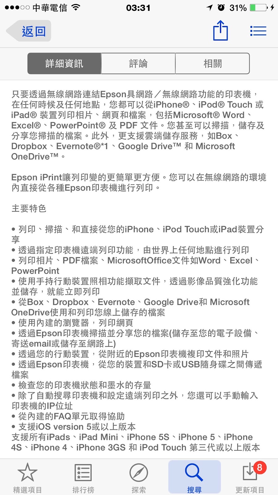 現在什麼都是APP的時代,果然讓我在APPLE iTunes store 找到Epson的APP